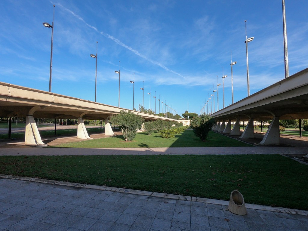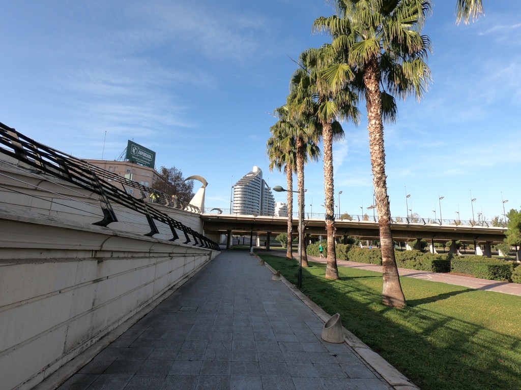 Situado entre los barrios de Nou Moles, Sant Pau y Campanar, comunica, por la margen derecha, el Paseo de la Pechina y la calle del Nueve de Octubre, en la dirección del puente y por la margen izquierda, la Avenida de Manuel de Falla y la Avenida de Pío Baroja, en la prolongación del puente.