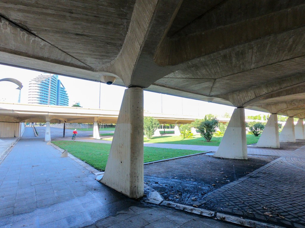 El proyecto original del puente y del jardín del Turia, contemplaba una lámina de agua bajo el puente, que finalmente no se construyó. Las bases de los pilares de hormigón estaban preparadas para albergar unas luces, que finalmente no se colocaron.