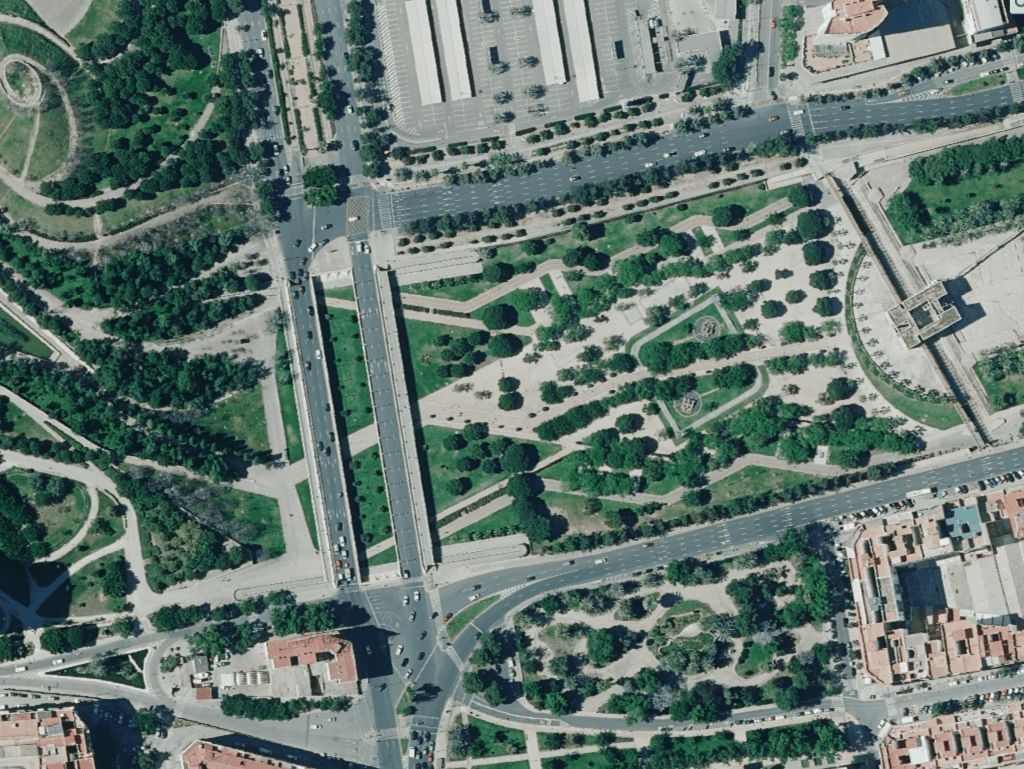 Anchura: 2 x 11m (calzadas) + 2 x 4m (aceras) + 18m (espacio intermedio)