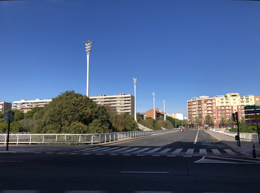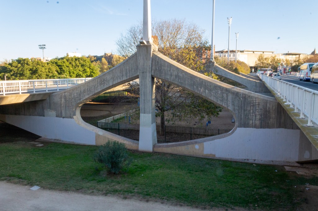 Recibe el nombre de Pont de Les Arts, por la cercanía del IVAM, uno de los museos de arte moderno más singulares de nuestro país.