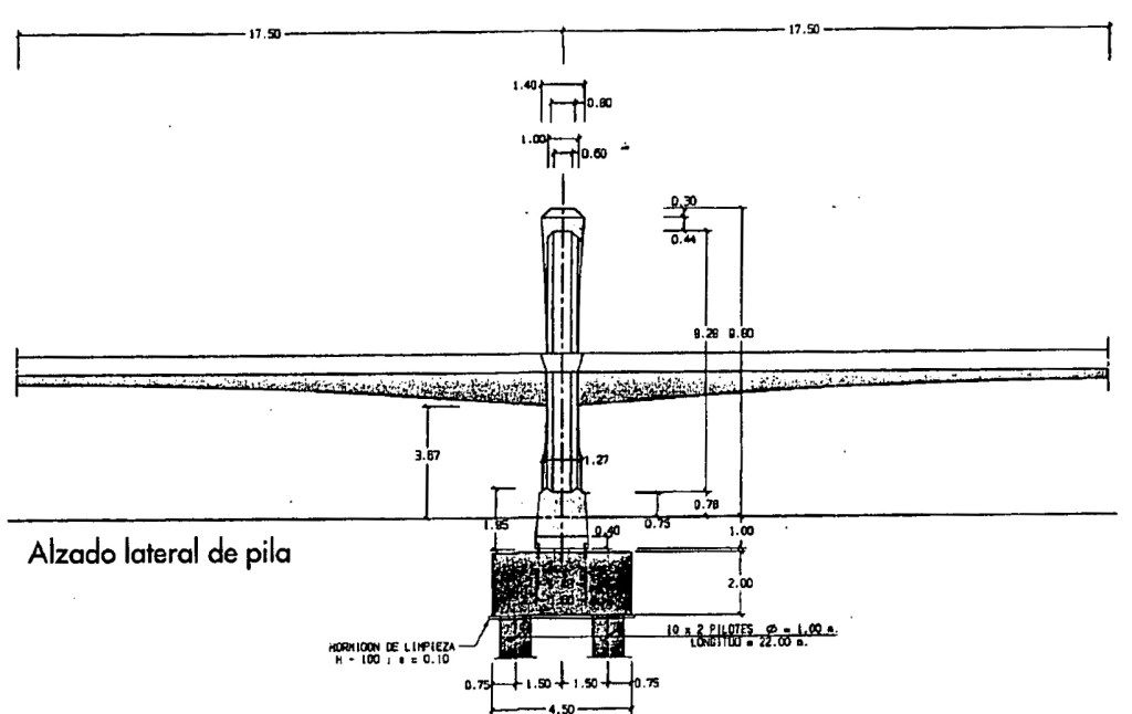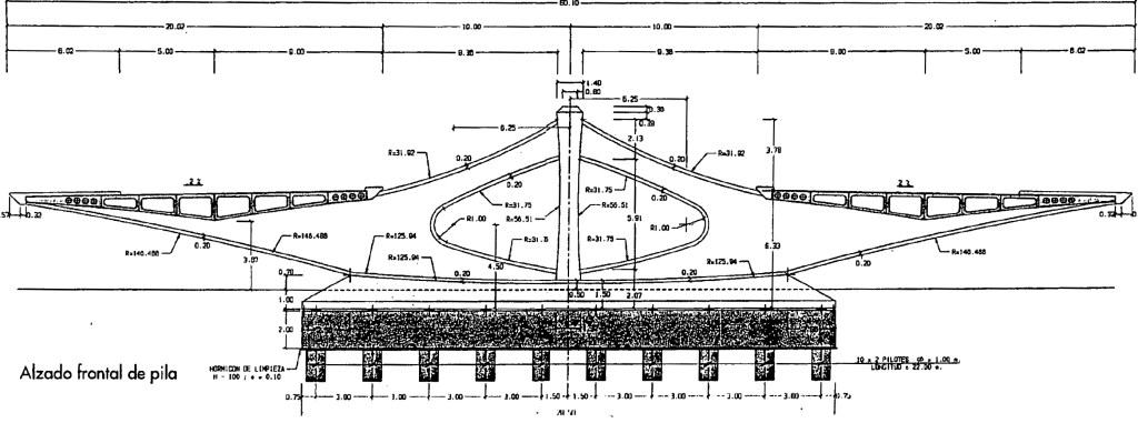 Estructura: Doble tablero en ménsula sobre 4 pilas centrales, siendo cada tablero una viga continua de cinco vanos de 20m + 3x36m + 20m de luces de los mismos