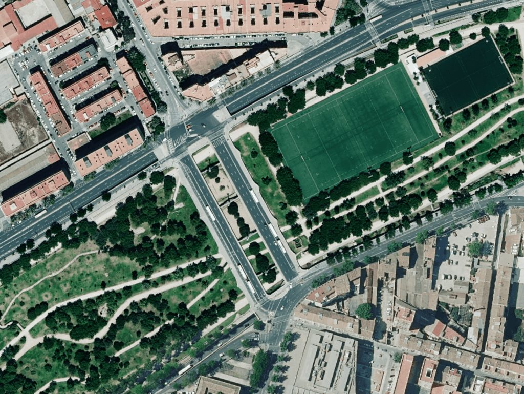 Situado entre los barrios de Les Tendetes y el Carme, comunica, por la margen derecha, el Paseo de la Pechina, en paralelo al cauce y la calle de Guillem de Castro y la calle de Na Jordana y por la margen izquierda, con la Avenida de Menéndez Pidal y el carrer de Mauro Guillén, paralelas al cauce y la calle del Padre Ferris en la dirección del puente