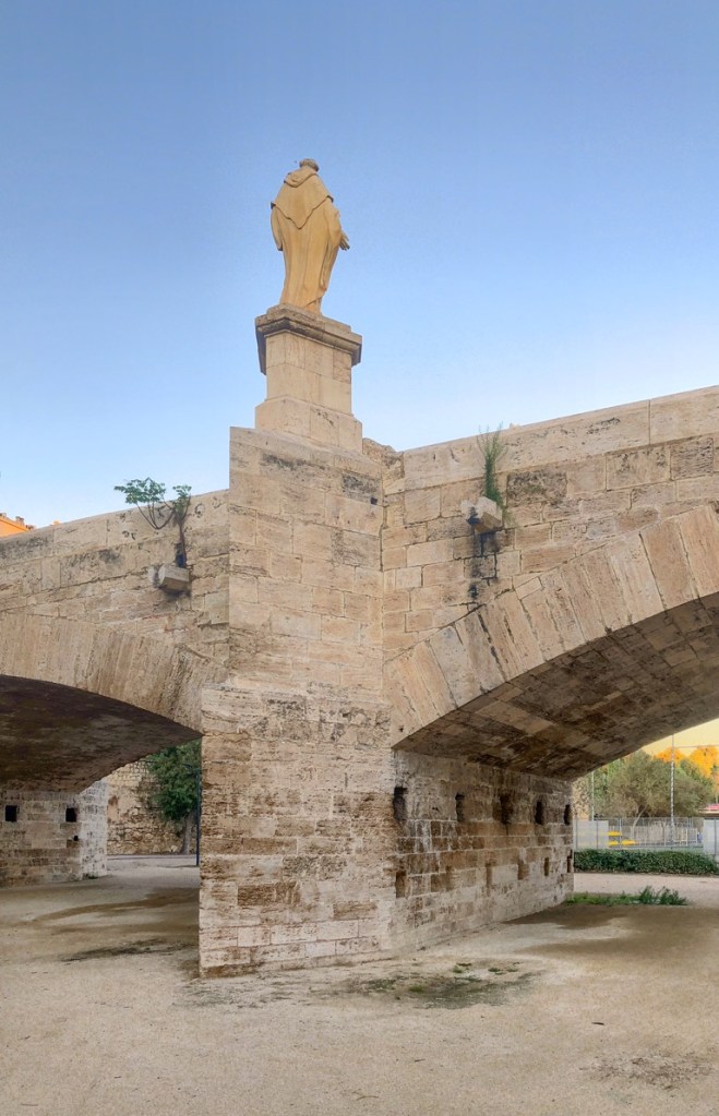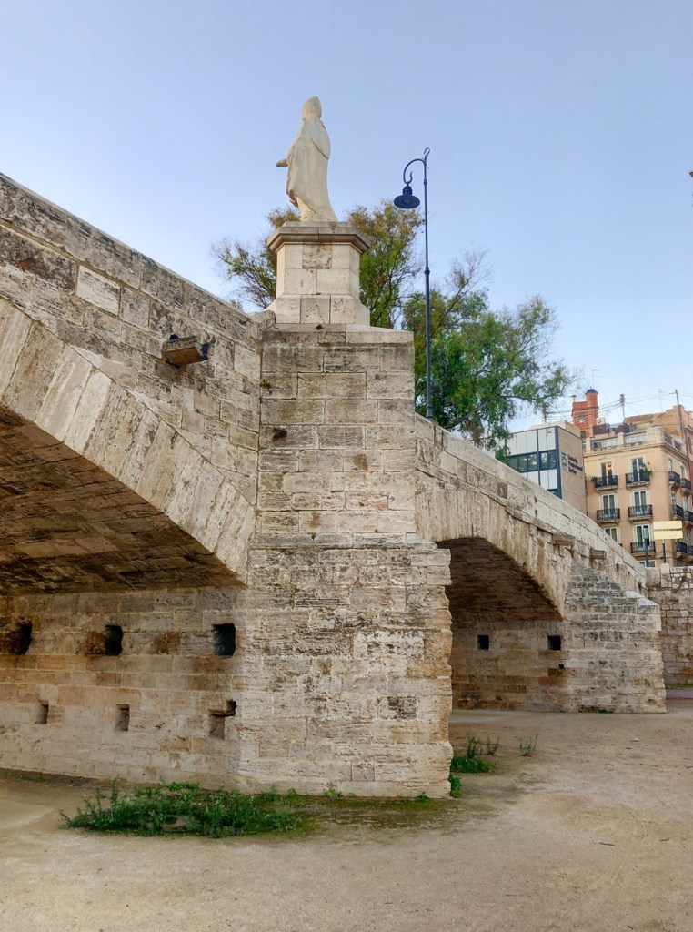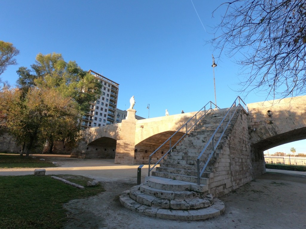 Reformas: El puente ha tenido diversas intervenciones y reparaciones para garantizar su mantenimiento, la más importante de las cuales tuvo lugar en 2005, junto con el puente de Serranos, en que se cosieron con anclajes de fibra de vidrio las grietas, se cambio la pavimentación por adoquinado y se recuperaron las dos escalinatas, para lo que se rebajaron los pretiles en las embocaduras de las mismas y se repusieron los peldaños que estaban deteriorados.