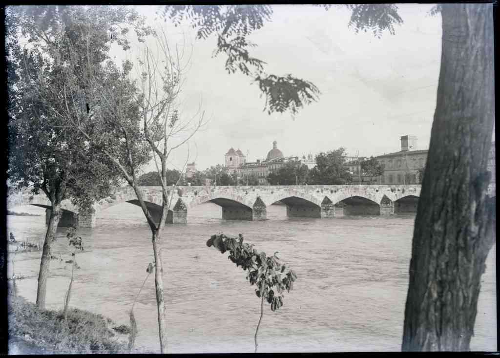 Se construyeron unas escalinatas de acceso al cauce, aguas abajo, en sustitución de los tajamares tercero y octavo y se piensa que estas escalinatas actuaron de contrafuertes y junto con la disposición perpendicular al cauce del puente, permitieron al mismo resistir la avenida catastrófica de 1427, que derribó los otros puentes de la ciudad, lo mismo que en la riada de 1517, en que cayeron los puentes del Real y Serranos. Estas escalinatas no obstante, no llegaban completamente al lecho del cauce, en previsión que subieran a la ciudad diversas alimañas. En la última intervención que se hizo en el puente, se prolongaron las escalinatas para permitir el descenso al jardín del cauce.