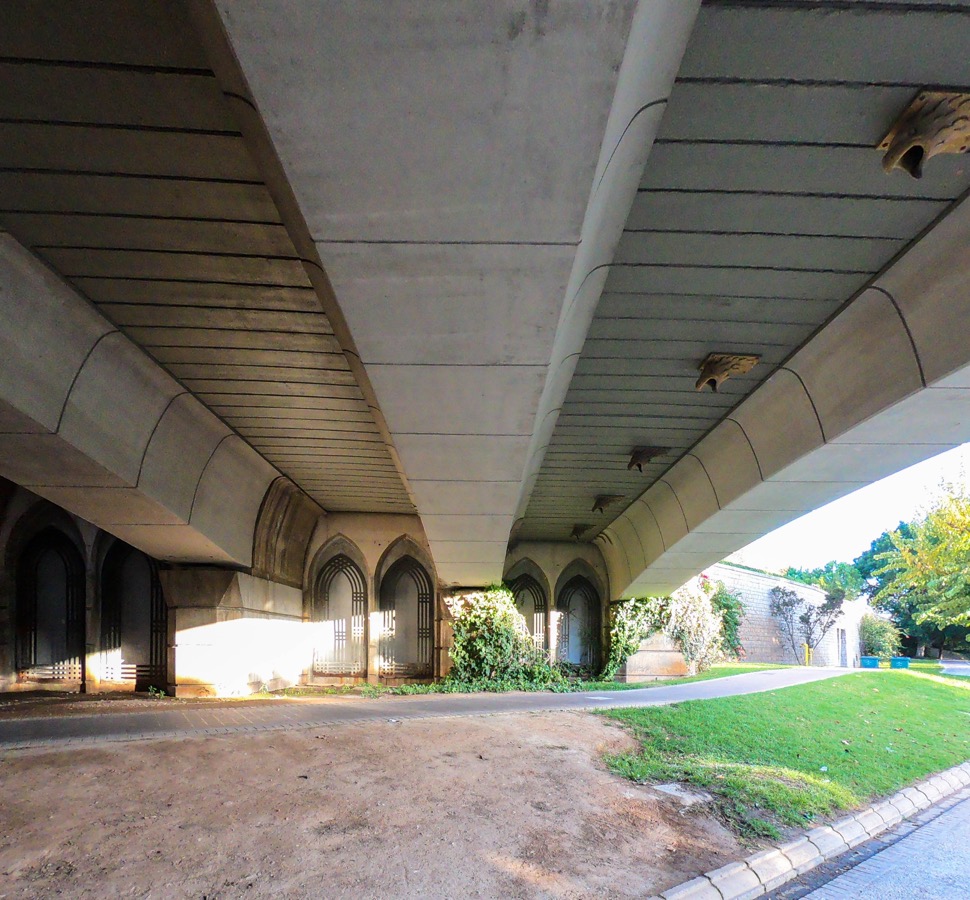 Reformas: La reforma realizada en 2022 al parque infantil Gulliver, lindante aguas arriba al puente, ha provocado el encajonamiento de las pilas exteriores del tablero de aguas arriba, por la extensión de la valla de delimitación del citado parque infantil