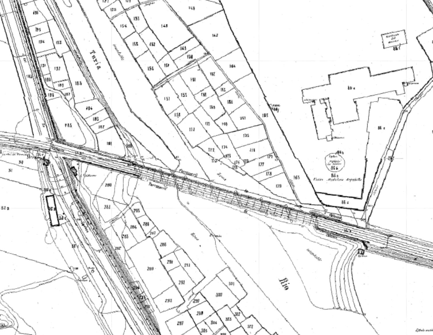 El trazado del Puente del Reino está efectuado sobre el original Puente del Ferrocarril, que fue desmontado en el siglo XX. Fotografías Geoportal València.