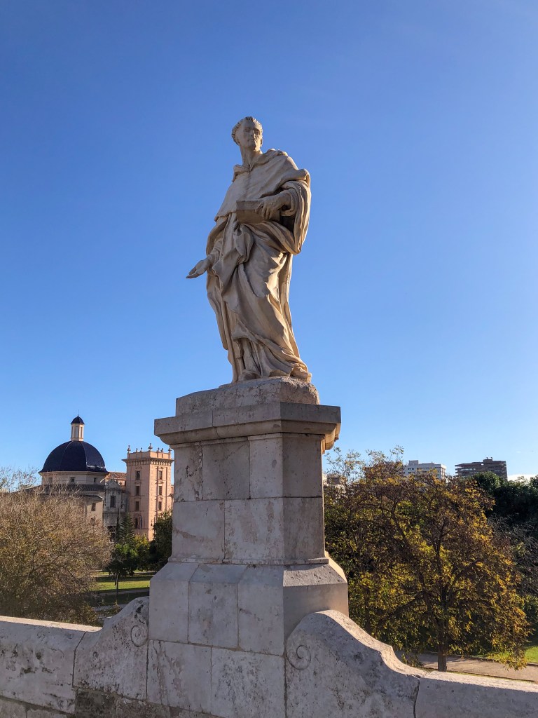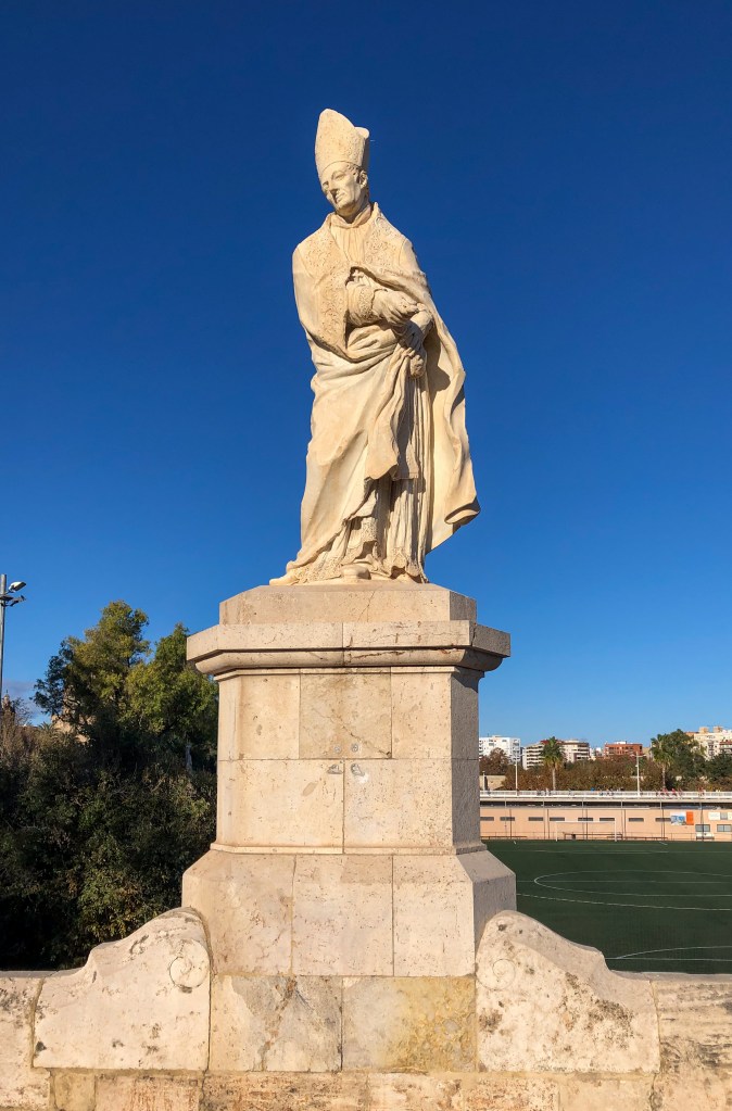 En el puente de la Trinidad se encuentran las estatuas de San Luis Bertrán y Santo Tomás de Villanueva, esculturas del genovés Giacomo Ponzanelli.