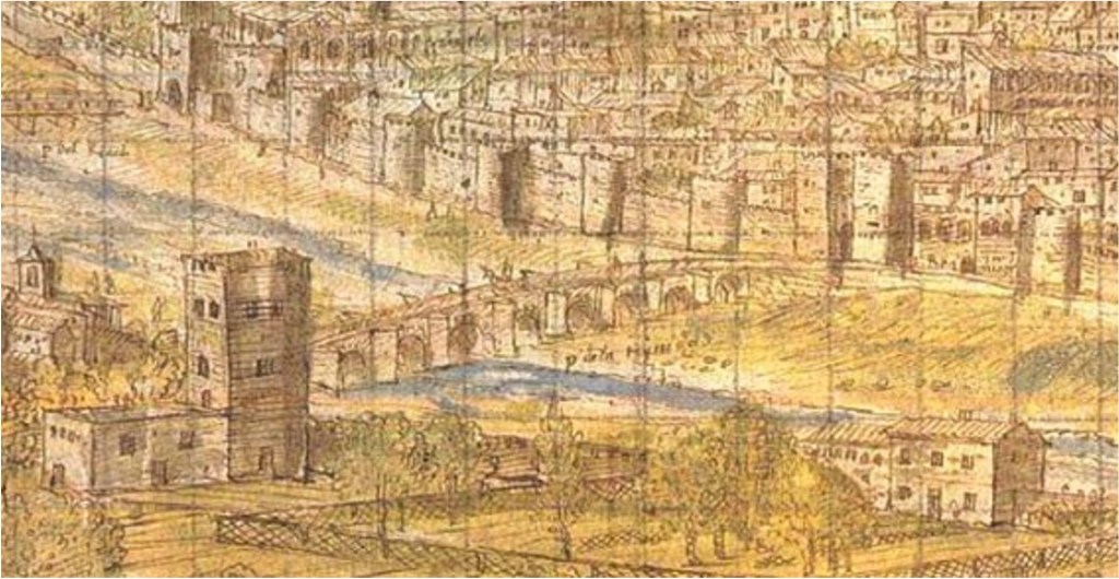 Gracias a este grabado podemos apreciar una serie de características de los puentes que existían en esa época.