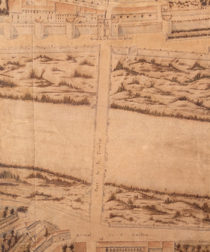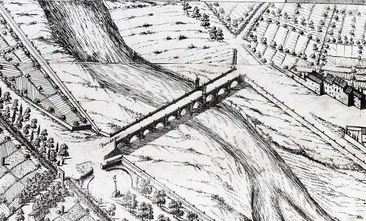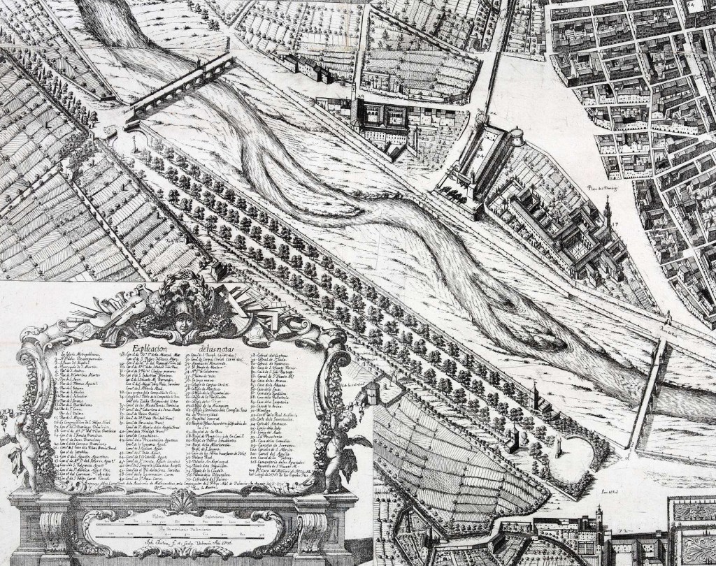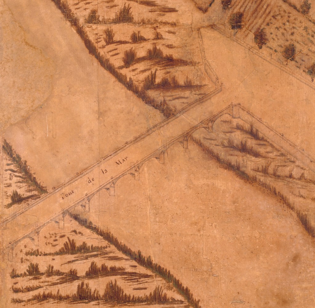 En el plano se pueden apreciar los cinco puentes renacentistas, con un nivel de definición y exactitud muy apreciables.