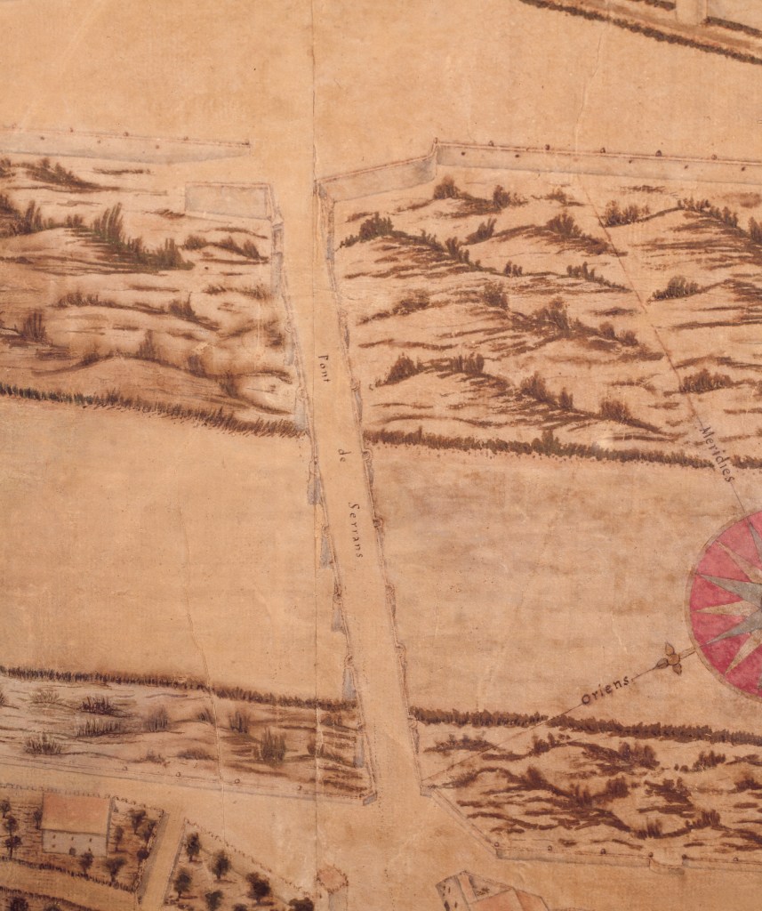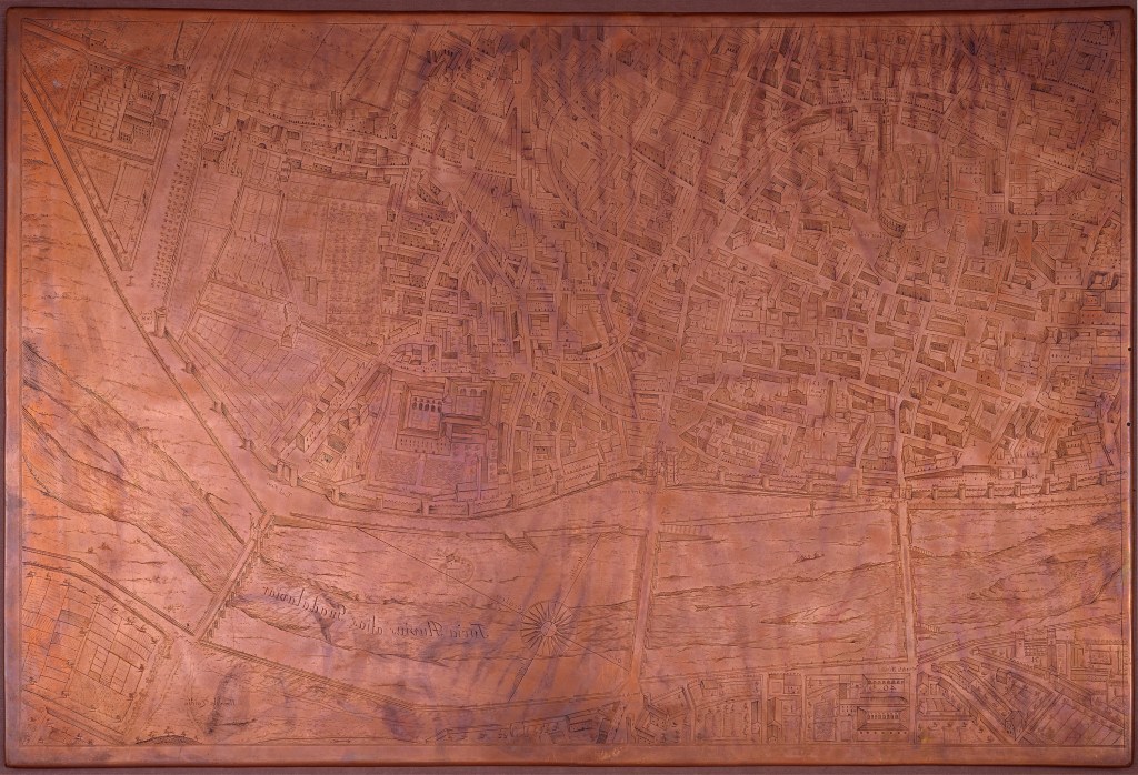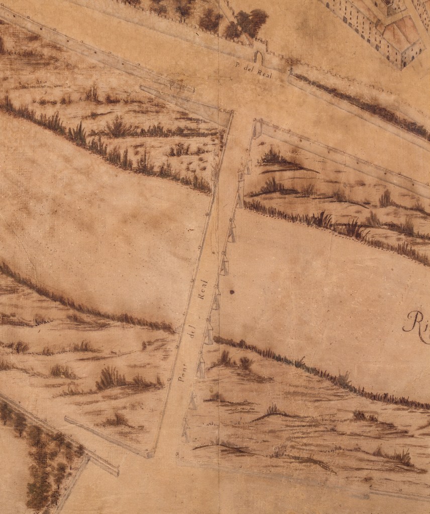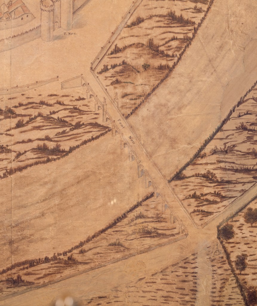 En el plano se pueden apreciar los cinco puentes renacentistas, con un nivel de definición y exactitud muy apreciables.