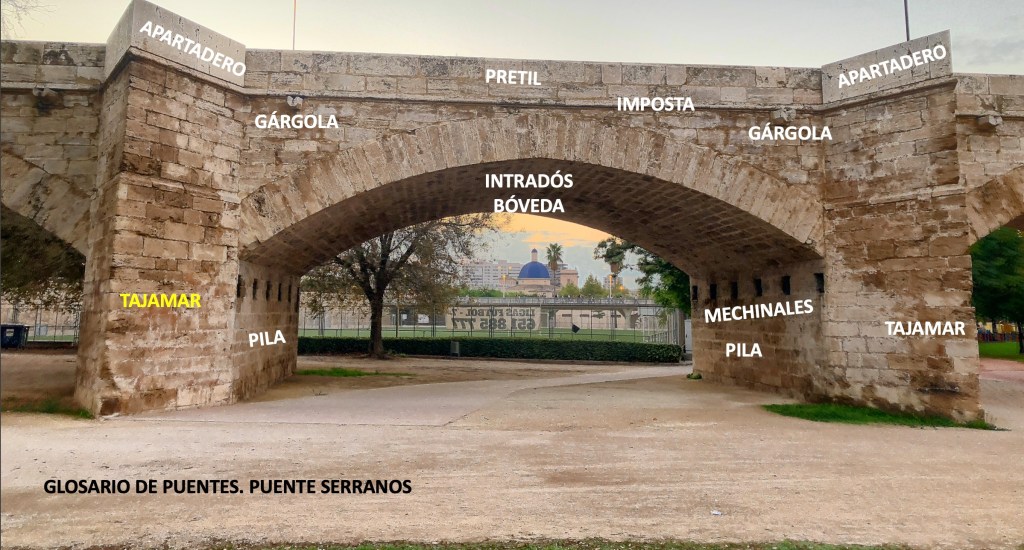 Arcos: En los puentes de Valencia encontramos dos tipos de arcos: apuntados, en los puentes que tienen una traza gótica y escarzanos