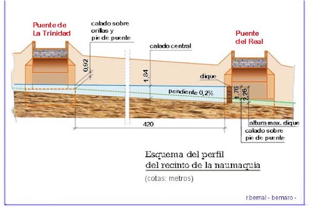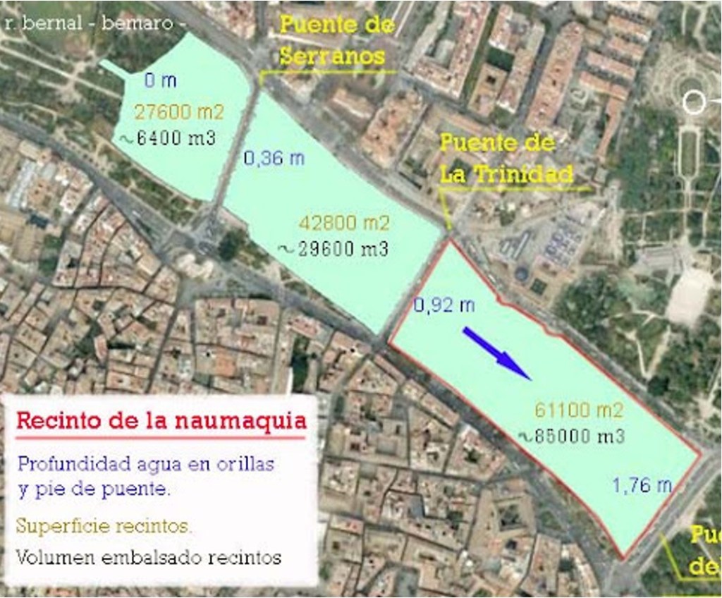 La primera iniciativa en este sentido fue la Naumaquia de 1755, para conmemorar, mediante la recreación de una batalla naval, el tercer centenario de la canonización de San Vicente Ferrer. Para ello se habilitó un recinto, entre los puentes de la Trinidad y del Real, colocando una serie de diques en el puente del Real, para contener el agua hasta una determinada cota, creando una zona inundada, en la que se recreó una batalla naval, que fue todo un acontecimiento para la época.